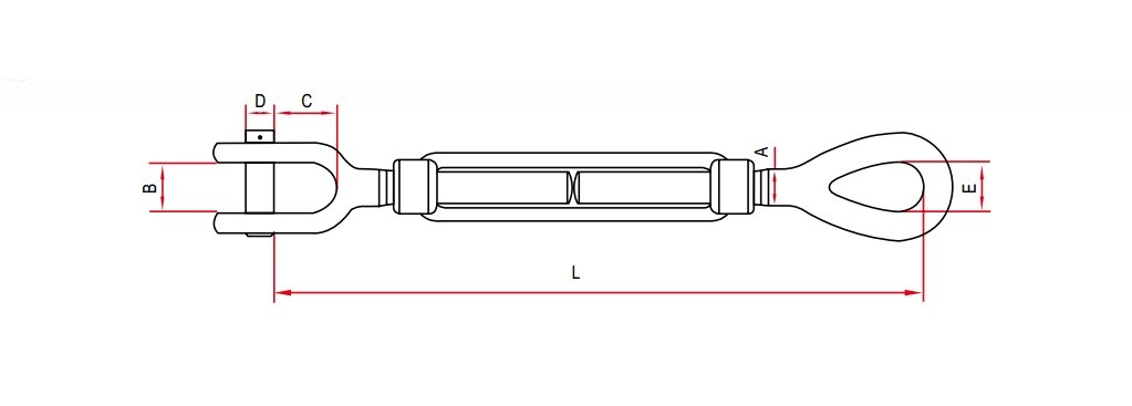 - 花篮螺丝用于拉紧钢丝绳,并起调节松紧作用。